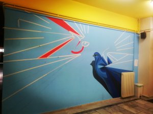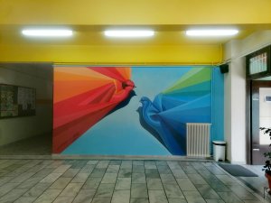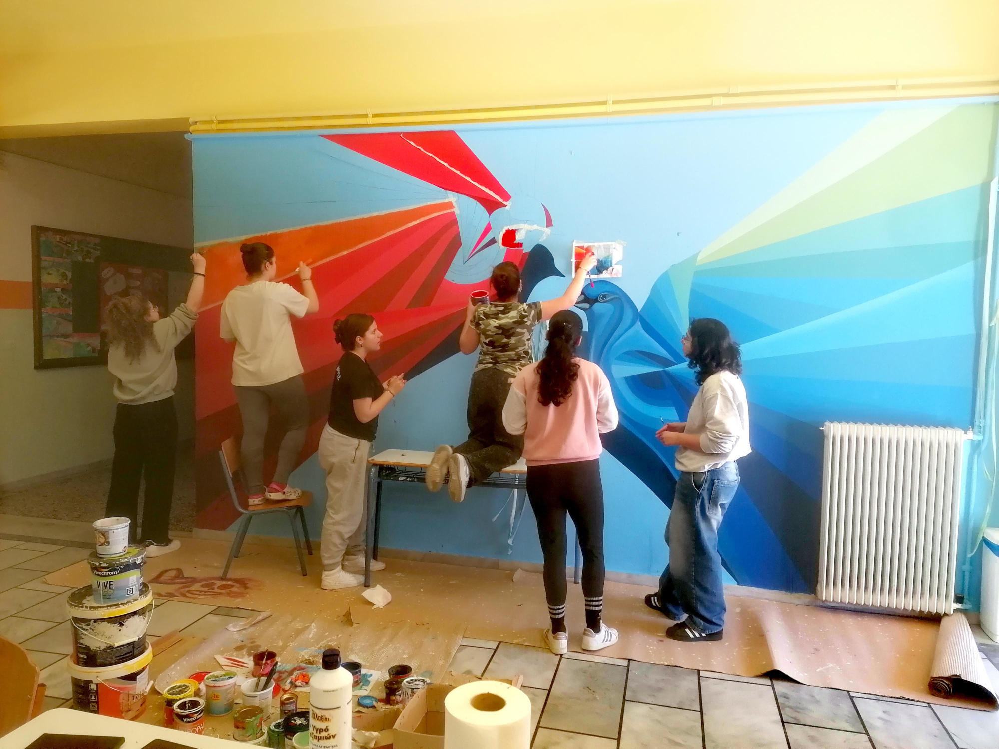 Με δύο ιδιαίτερες τοιχογραφίες αποτέλεσμα της διαθεματικής εργασίας "Η ερμηνεία του πολέμου και οι διαμορφωτικοί παράγοντες στο σύγχρονο κόσμο" έκλεισε η φετινή σχολική χρονιά. Η εργασία αναπτύχθηκε στο πλαίσιο του άξονα Διδασκαλία Μάθηση και Αξιολόγηση-Μαθαίνω καλύτερα, όπου μαθητές και μαθήτριες της Β΄ τάξης ασκήθηκαν ερευνητικά και γνωστικά μέσα από τα προγράμματα σπουδών αλλά και εξωγενής εκπαιδευτικές δράσεις στην διαχρονικότητα των πολέμων, στα πεδία πυροδότησης και στις επιπτώσεις του τόσο προς την Ανθρωπότητα όσο και προς το Πλανήτη.