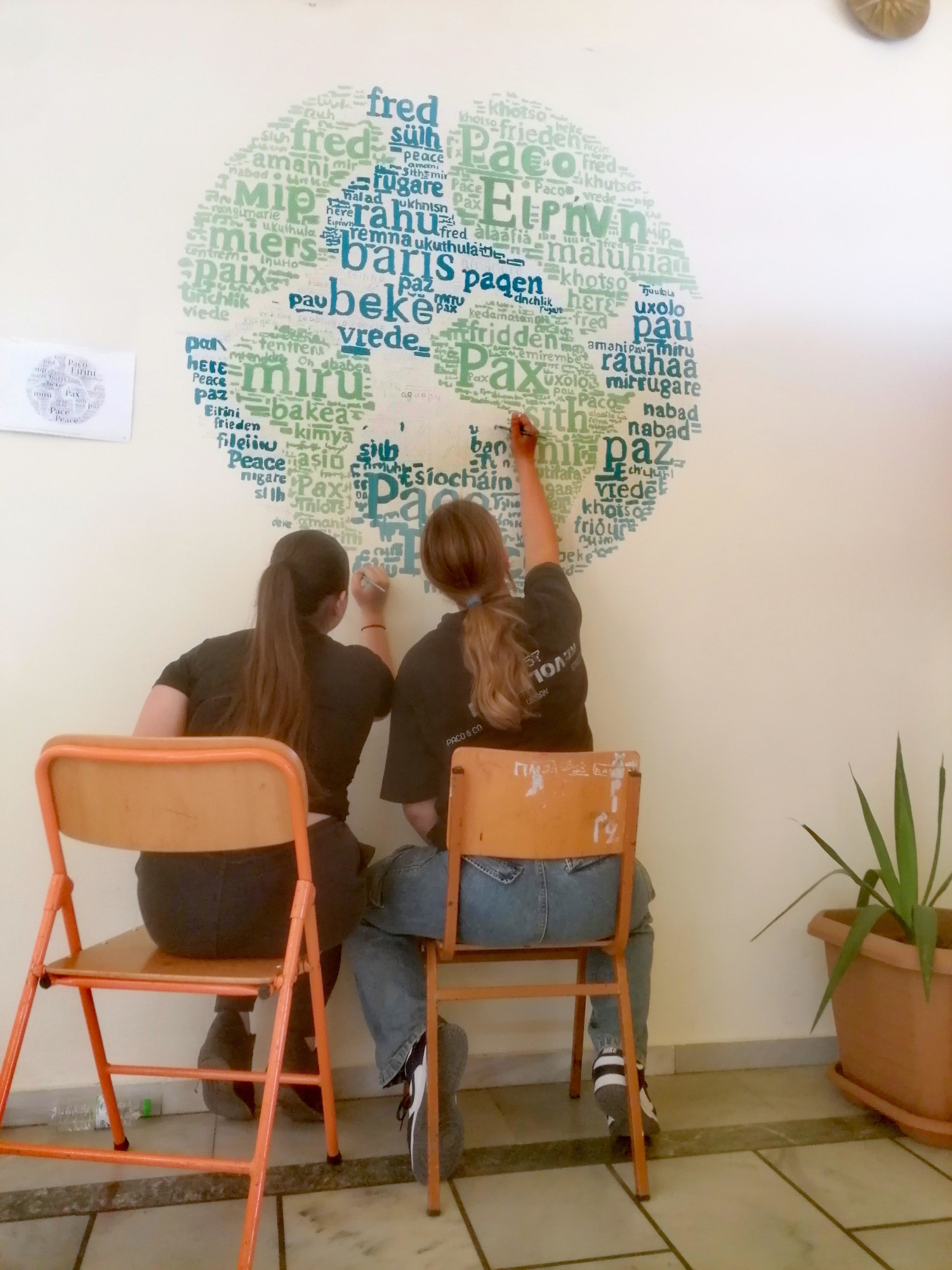Αναγνώρισαν πως ο διαχωρισμός, το ατομικό συμφέρον και η έλλειψη ανθρώπινης προσωπικής ευθύνης είναι αιτία ανάπτυξης και καλλιέργειας ανισοτήτων σε παγκόσμια κλίμακα. Κατανόησαν, πως με ομαδική εργασία μπορούν να καλλιεργηθούν σημαντικές αξίες όπως η συνεργασία, η αμοιβαιότητα και το ενδιαφέρον προς το συνάνθρωπο. Στο επιτοίχιο έργο απόδοσης του Γυμνασίου αναγράφεται η λέξη ΕΙΡΗΝΗ σε κάθε γλώσσα του πλανήτη.