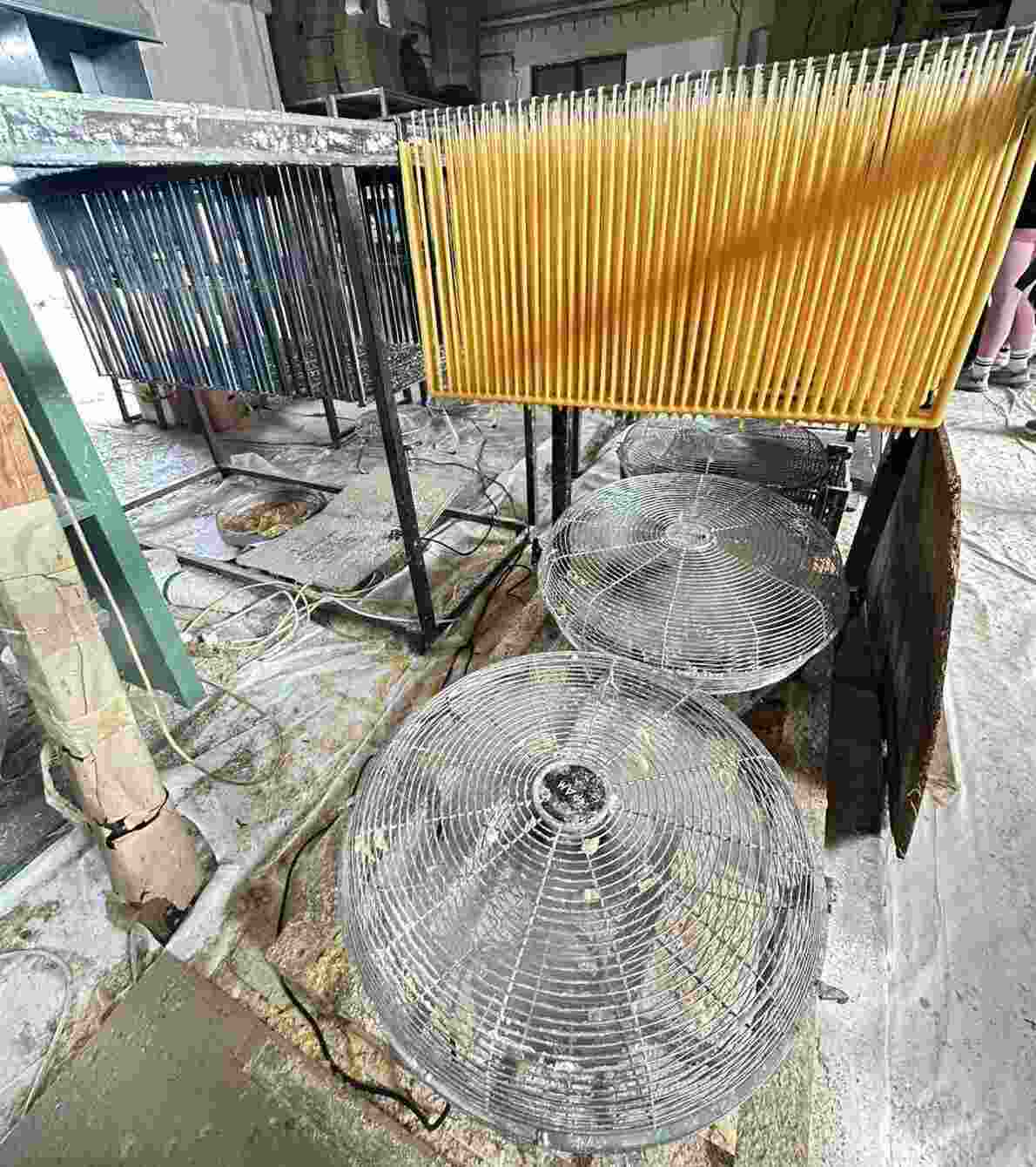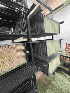 Αφού τα κεριά σχηματίστηκαν πλήρως γύρω από τα φυτίλια, παραμένουν για κάποιο διάστημα σε ειδικά διαμορφωμένο χώρο ψύξης, όπου η θερμοκρασία ελέγχεται προσεκτικά ώστε να σταθεροποιηθούν σωστά και να αποκτήσουν την κατάλληλη σκληρότητα πριν την κοπή. Στη συνέχεια, ακολουθεί το στάδιο της κοπής και διαχωρισμού. Με τη χρήση ειδικού εργαλείου, κόβεται οριζόντια το κάτω μέρος των πλαισίων, επιτρέποντας την απομάκρυνση των κεριών από τα πλαίσια με ακρίβεια.