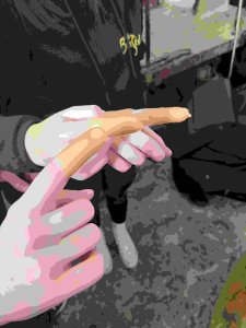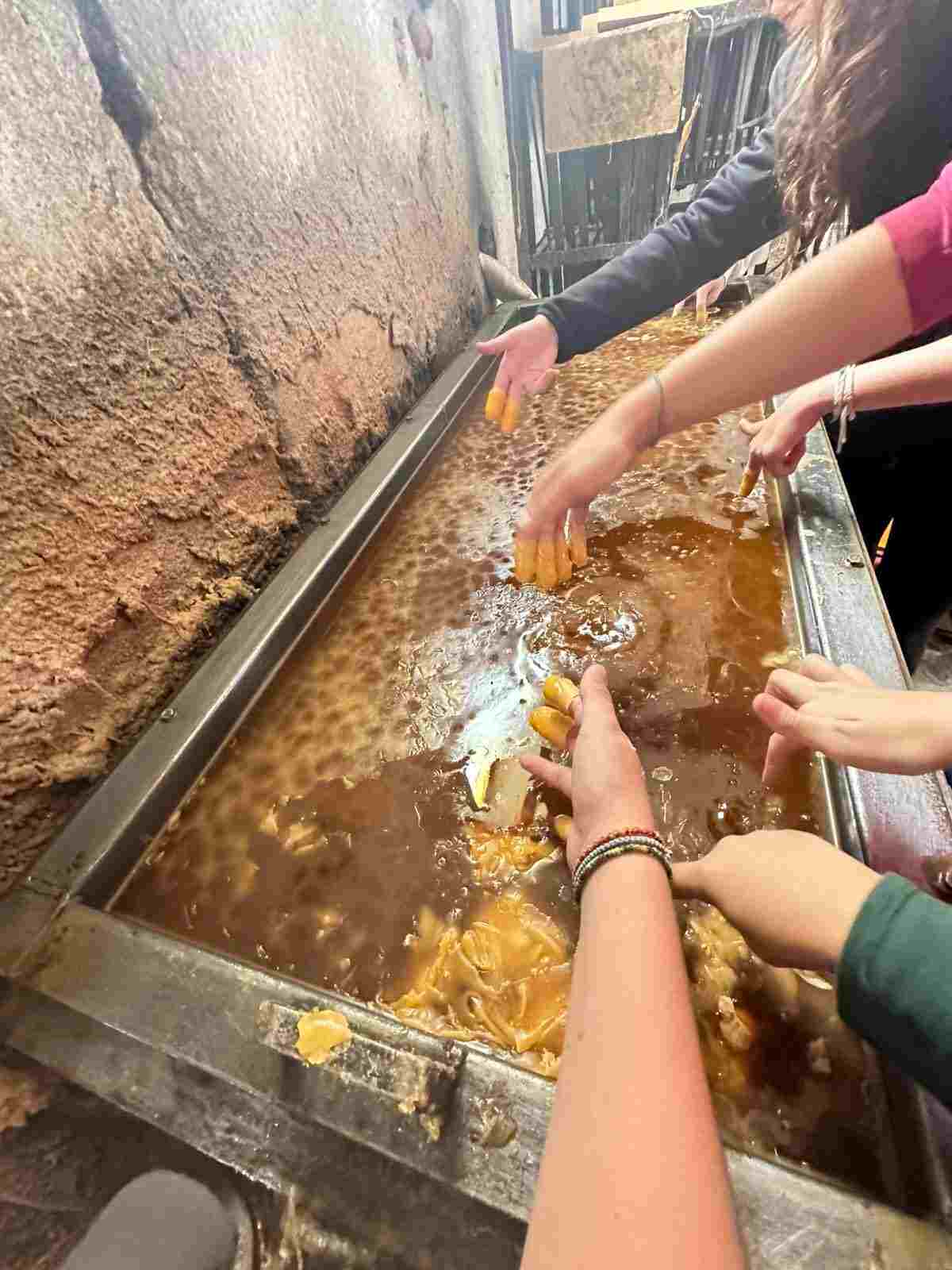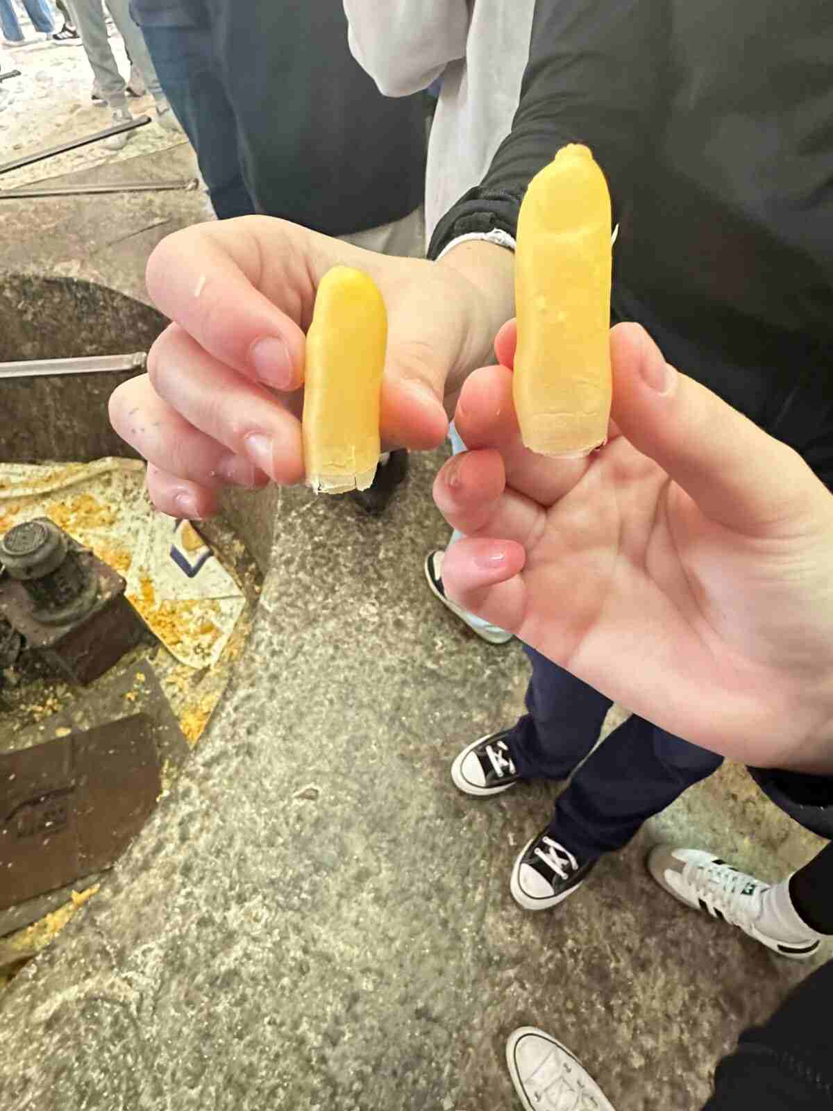 Στη συνέχεια, οι μαθητές είχαν την ευκαιρία να δημιουργήσουν το δικό τους προσωπικό αποτύπωμα σε κερί. Βυθίζοντας προσεκτικά το δάχτυλό τους στο καζάνι με το λιωμένο κερί επανειλημμένα, σχηματίστηκαν λεπτές στρώσεις παραφίνης γύρω από το δάχτυλο, οι οποίες παρέχουν την κατάλληλη πάχυνση για τη δημιουργία ενός σταθερού και αναλλοίωτου κερινού αποτυπώματος.